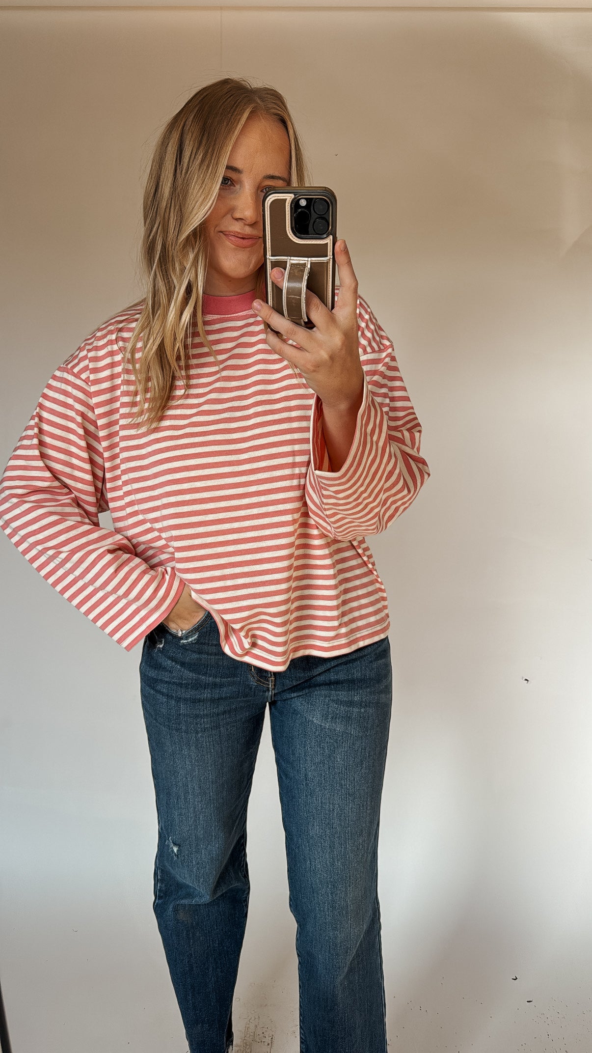 Oversized stripe long sleeve top in pink