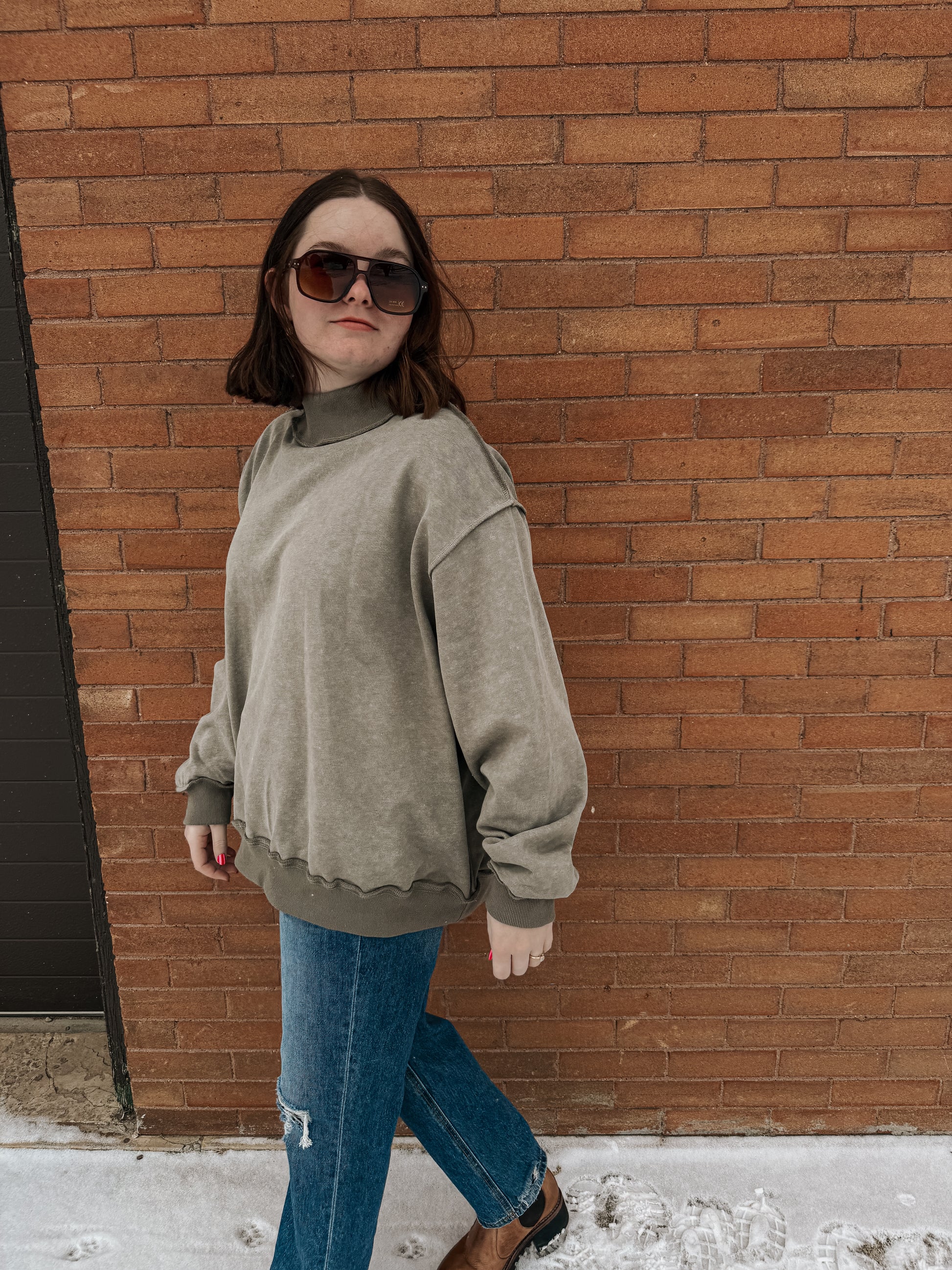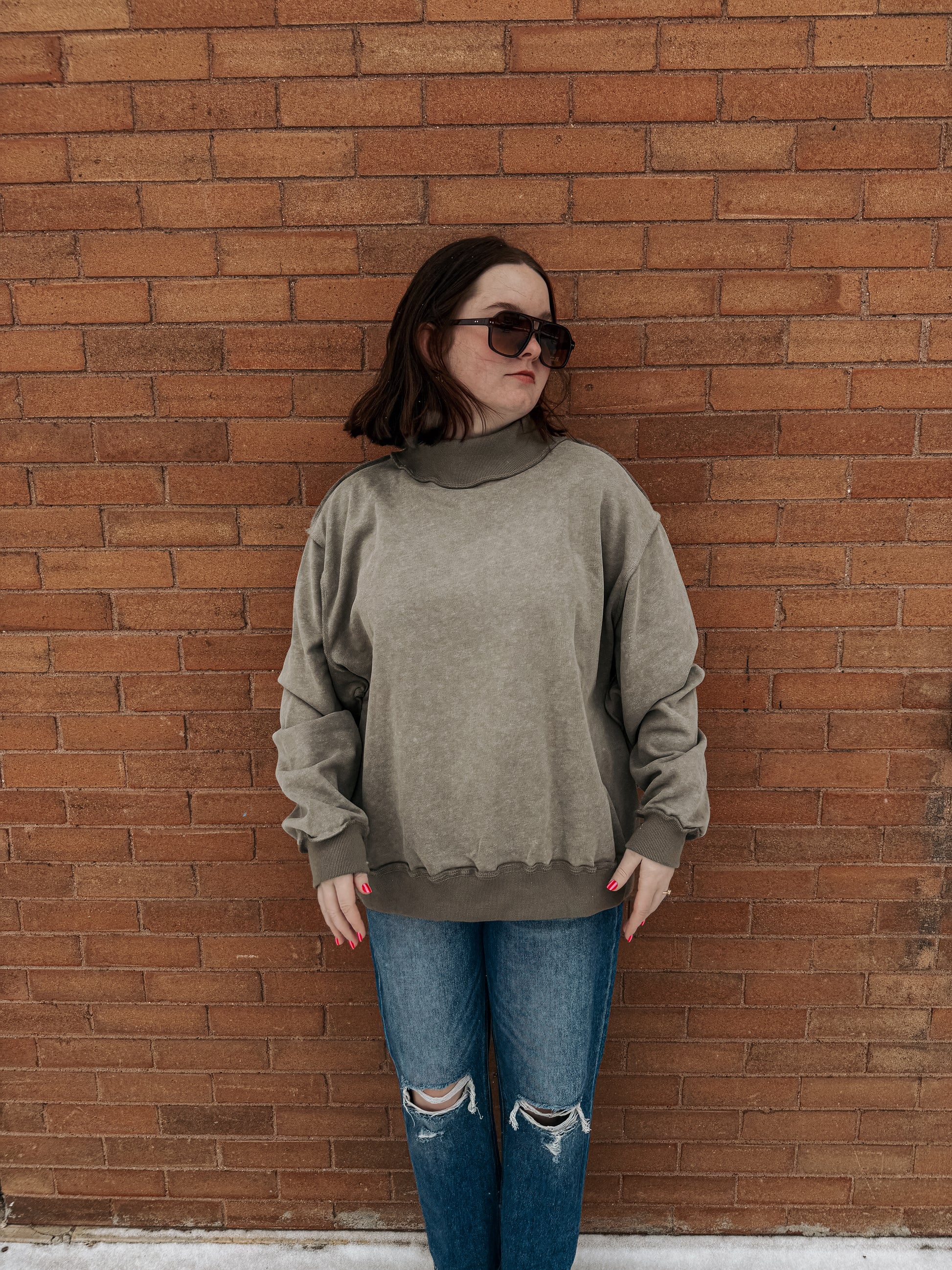 Vintage wash mock neck in olive